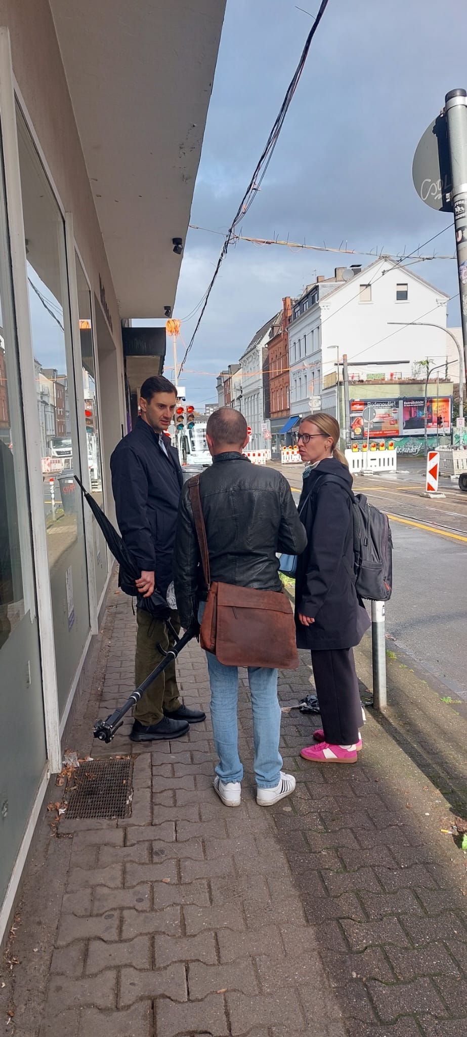 Das Interview mit Norbert Emmerich führte dem Augenschein nach Denis Davydov. Davydov arbeitet schon länger für die staatliche russische Propagandaholding WGTRK, zu der auch Rossija 1 gehört. Ein Foto, das Augenzeugen gemacht haben und das Spotlight Gelsenkirchen vorliegt, zeigt Davydov auf der Bochumer Straße.