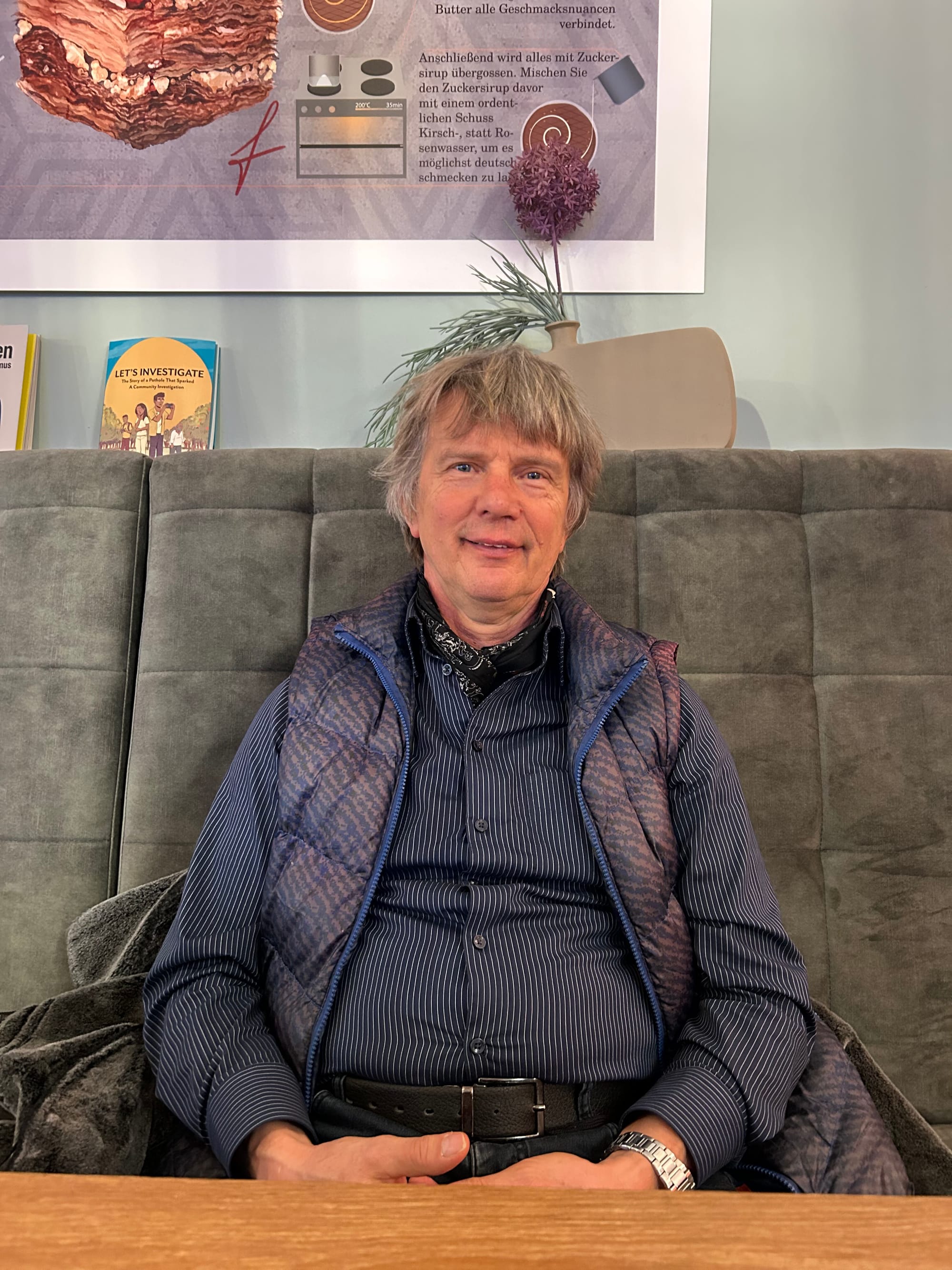 Norbert Labatzki ist Musiker, Performance-Künstler und seit 2020 auch Cafébesitzer. Er betreibt das Café „Schloss Stolzenfelz” in der Gelsenkirchener Innenstadt. Mit seiner Käthe-Kasse möchte er die Menschen unterstützen, die sich sonst eher keinen Kaffee oder Frühstück in Cafés leisten können. Gäste können Geld in die Käthe-Kasse einzahlen und so anderen Menschen Kaffee ausgeben.