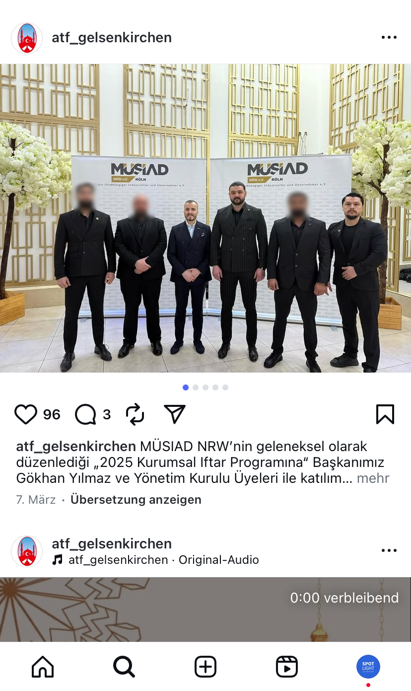 Vurkan Alkin de “ATF Gelsenkirchen” Instagram sayfasında bir çok fotoğrafta görülüyor. Örneğin, Gökhan Yılmaz ile birlikte, GUT'un başkan yardımcısı Aytekin Bucak'ın yönetim kurulunda yer aldığı bir girişimciler derneği olan “MÜSIAD NRW”nin bir etkinliğinde poz veriyorlar. Ancak Bucak, yerel seçimlerde aday değil.