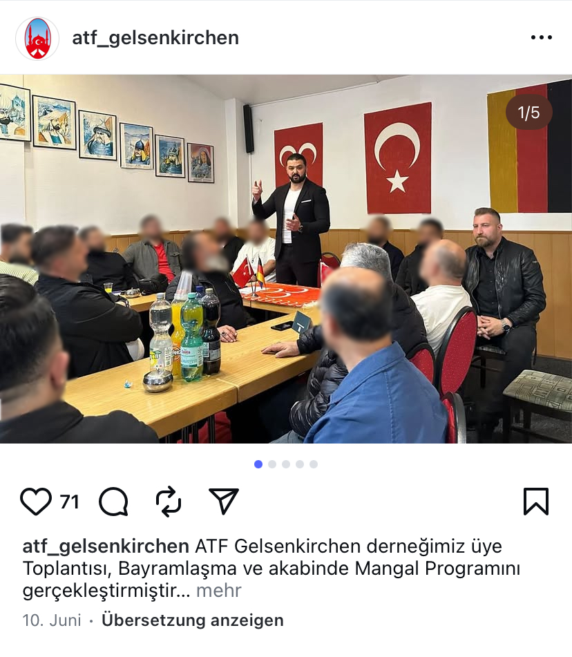GUT'ta, “Ülkücü” harekete ait “ATF Gelsenkirchen” derneği ile adayların çarpıcı bir şekilde örtüşmesi göze çarpıyor: ‘ATF’, “Almanya Türk Federasyon”un kısaltmasıdır. “Türk Federasyon” veya resmi adıyla “Almanya Demokratik Ülkücü Türk Dernekleri Federasyonu” (ADÜTDF), MHP’nin yurtdışındaki örgütlerinden birisidir. NRW Anayasa Koruma Dairesi'ne göre, sadece Kuzey Ren-Vestfalya'da 70 ADÜTDF yerel derneği faaliyet göstermektedir. Gelsenkirchen'deki gibi yerel dernekler.
