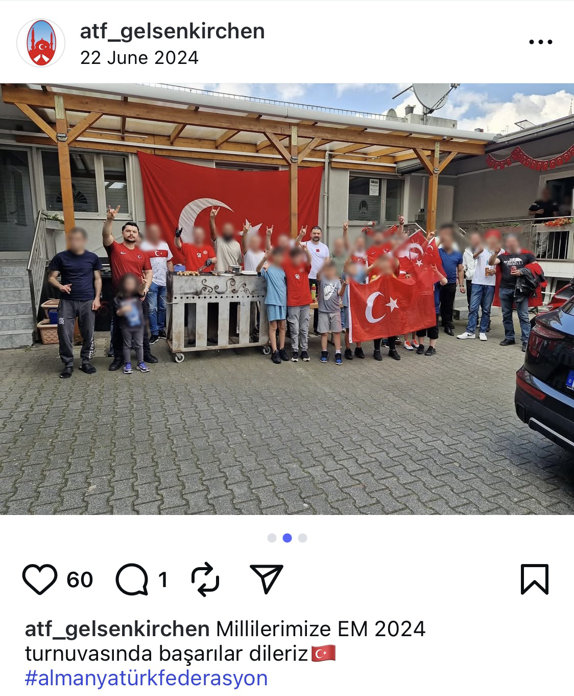 İki fotoğraf özellikle ilginç: Ekim 2024'te derneğin 30. yıldönümünde Yılmaz, Schalke'deki bir etkinlik salonunda kutlamaya onur konuğu olarak davet edilen eski MHP milletvekili Cemal Çetin'in yanında poz veriyor. Diğer fotoğraflarda Yılmaz’ın, “Bozkurt selamı” yaparken görülüyor. Anayasa Koruma Dairesi'ne göre bu, Türk aşırı sağcılarınbaşka bir ayırt edici sembolü - her ne kadar onlar bunu inkar etseler de.