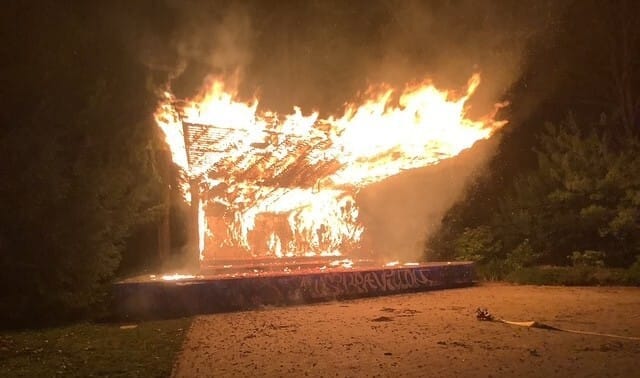 +++ Die Polizei geht beim Brand des Musikpavillons im Stadtgarten aktuell von Brandstiftung aus. Der Pavillon an der Zeppelinallee stand am Donnerstagabend in Flammen und brannte aus, wie Polizei und Feuerwehr am Freitag mitteilten. Ein 22-jähriger Mann hörte laut Polizei gegen 20.10 Uhr Stimmen am Musikpavillon, zehn Minuten später brannte das Gebäude. Aktuell sieht die Polizei keine Hinweise auf eine natürliche Brandursache und sucht weitere Zeugen. Der Feuerwehreinsatz dauerte zweieinhalb Stunden. Die Grünen wollen in der nächsten Sitzung der Bezirksvertretung Mitte darüber sprechen, wie der Pavillon wieder aufgebaut werden kann und welche kurzfristigen Lösungen es für anstehende Veranstaltungen geben könnte, schrieben sie in einer Pressemitteilung. Feuerwehr Gelsenkirchen Polizei Gelsenkirchen